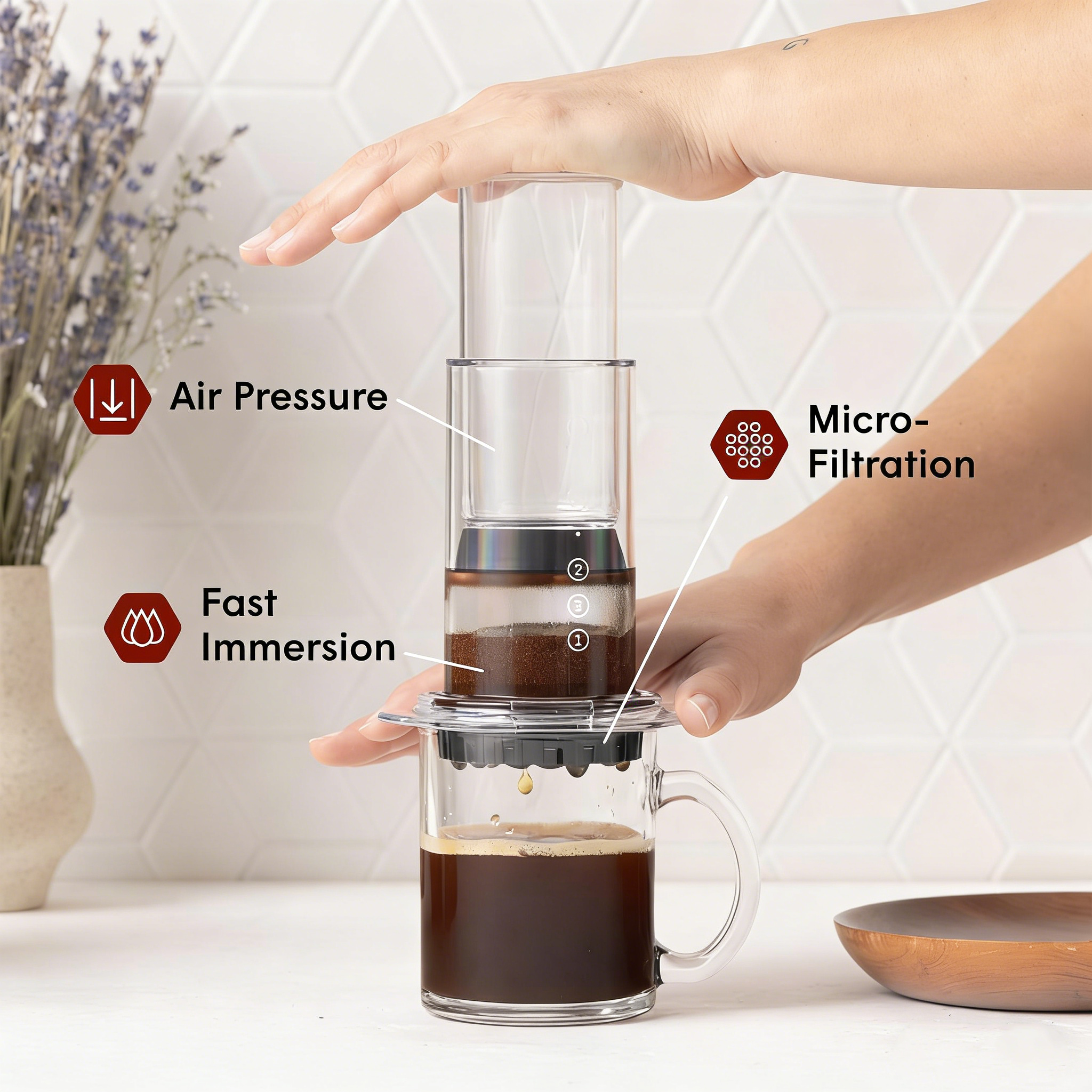 The combined effect of air pressure and micro-filtration accelerates extraction, reducing bitterness compared to other brewing methods, ensuring you enjoy a smoother cup with more vibrant coffee bean flavors.