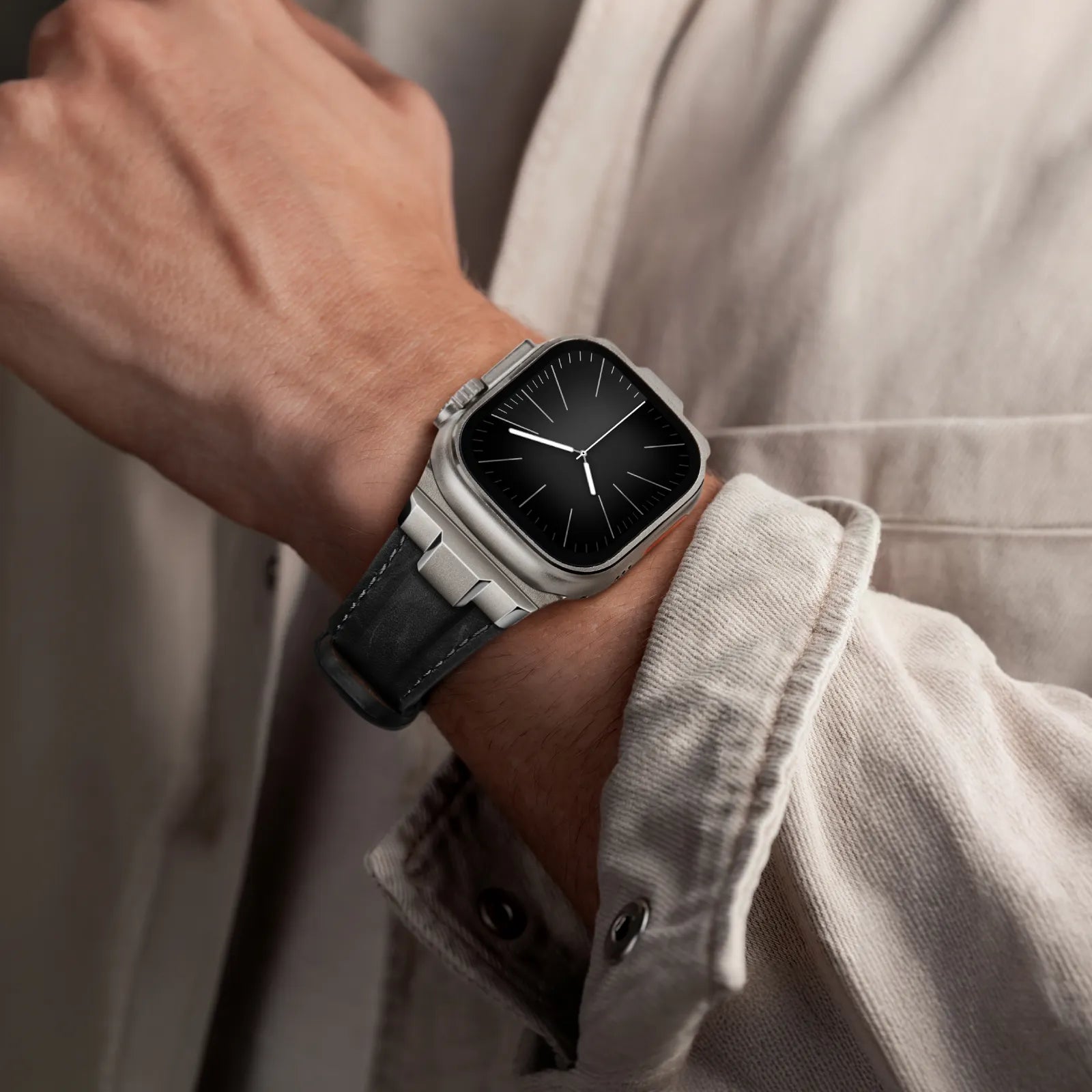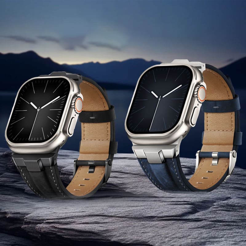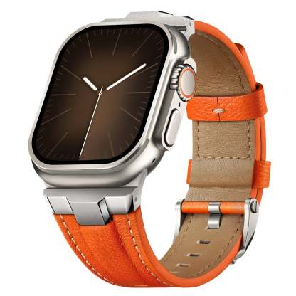 This premium leather strap for Apple Watch is crafted with exquisite attention to detail, featuring a 3D sculpted connector and polished beveled edges that seamlessly blend with the sleek lines of your Apple Watch Ultra. The perfect fusion of matte and polished finishes adds a modern, stylish touch to your wrist.