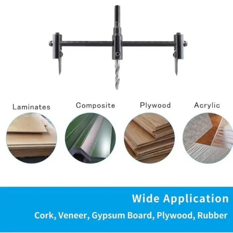 Tackle DIY and home improvement projects with confidence using this adjustable hole saw. Designed for precision and versatility, it cuts smooth, burr-free circles across a wide range of sizes, making it ideal for wood, drywall, plywood, acrylic, and more. With durable carbide blades, an accurate ruler scale, and compatibility with both bench and hand drills, this heavy-duty circle cutter boosts productivity and deliversclean results every time!