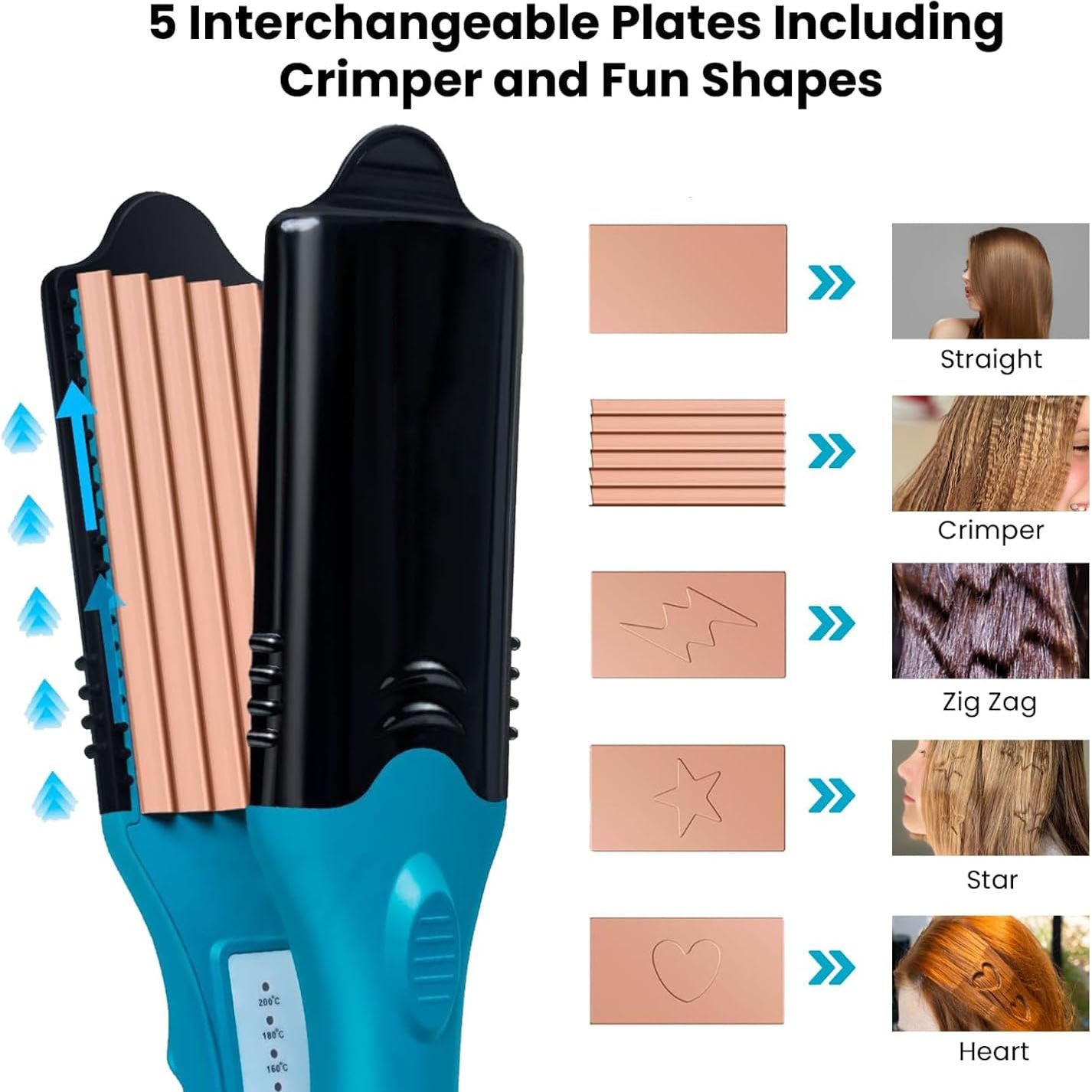 Includes straightening plates, crimping plates, and three shape plates to match your mood and style.