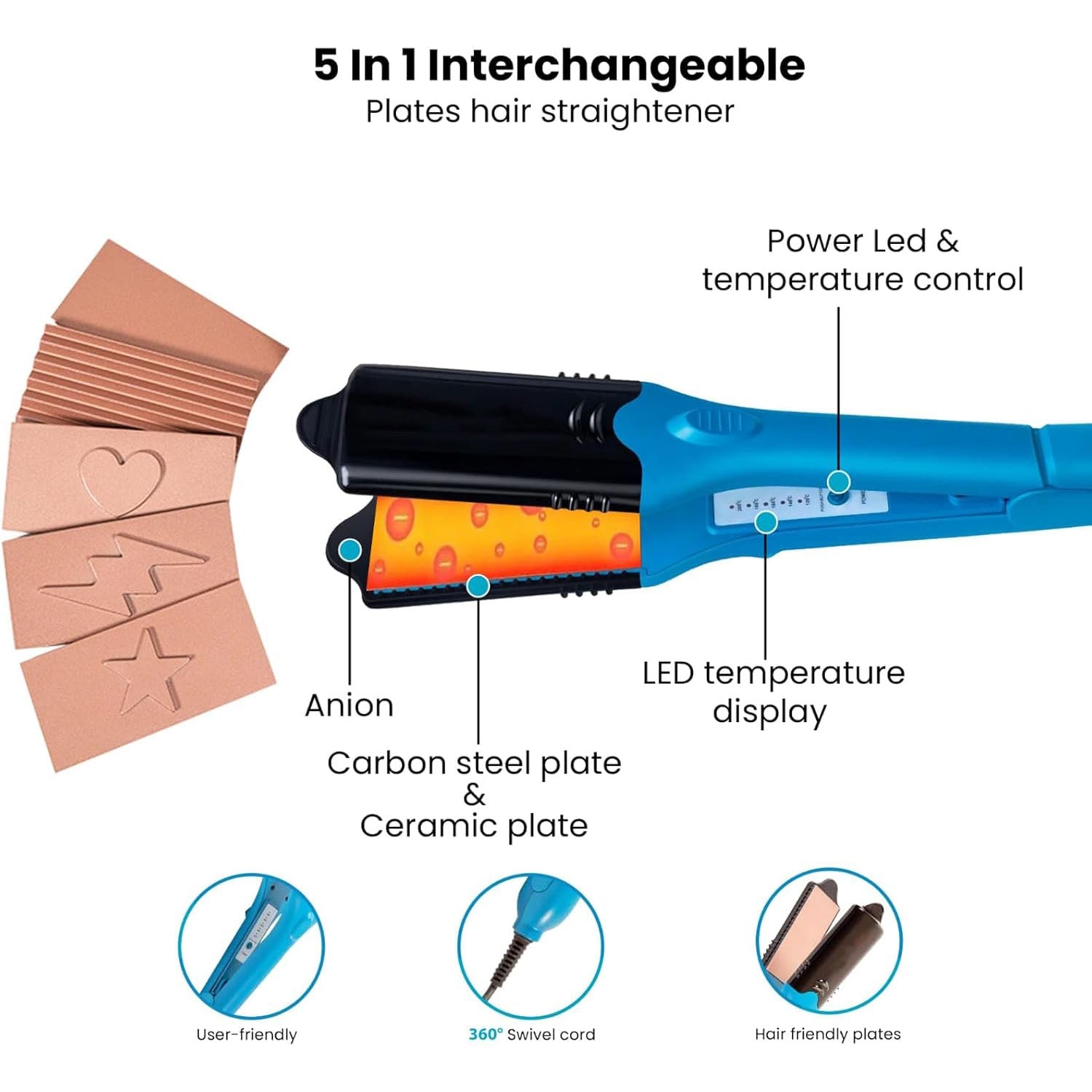 🔁 5 Interchangeable Styling Plates