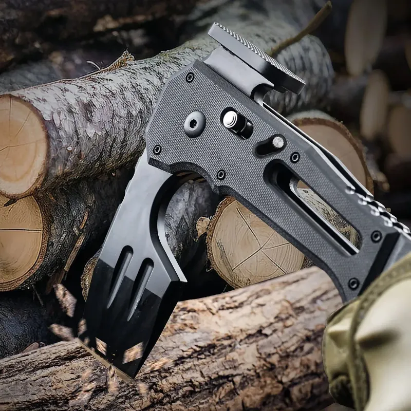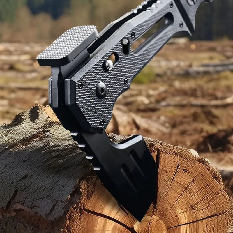 This axe features a dual-locking mechanism that ensures safety in both open and closed positions. The manual locking system keeps the blade securely in place during use, preventing accidental closure. An additional lock provides extra protection during storage to prevent the blade from popping out due to impact or vibration.