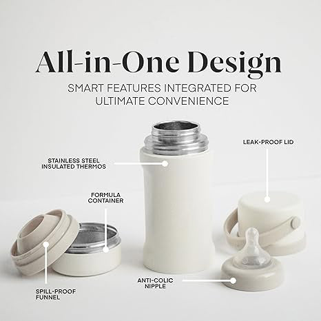 Includes a convenient formula container and leak-proof cap for easy travel use.