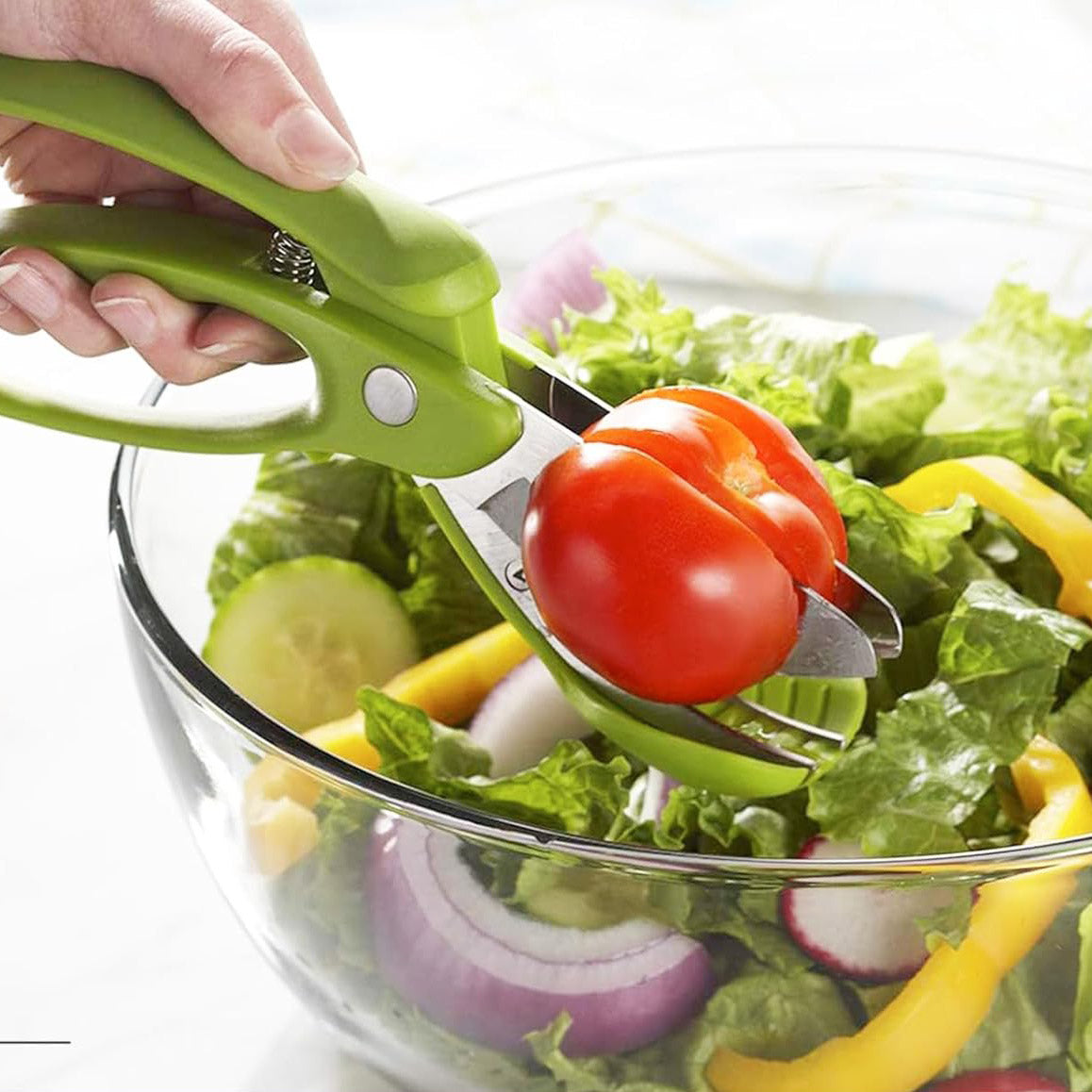 These toss and chop salad tongs are a versatile all-in-one kitchen tool designed to make salad prep faster, easier, and cleaner. Featuring integrated chopping blades, they allow you to slice, toss, and mix ingredients directly in the bowl—perfect for fresh salads, salsas, and everyday meal prep with minimal cleanup.
