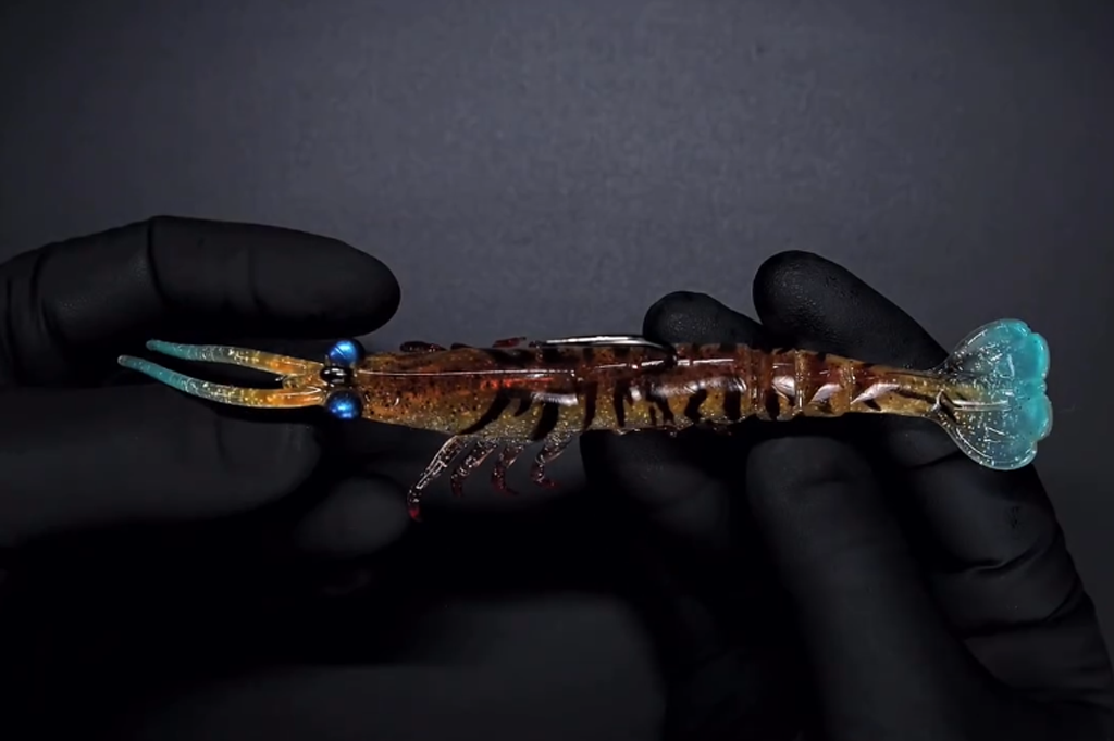 Articulated legs and flexible antennae are engineered to tremble, flutter, and pulsate subtly as the lure sinks and is retrieved slowly, mimicking the natural behavior of fleeing or injured shrimp.