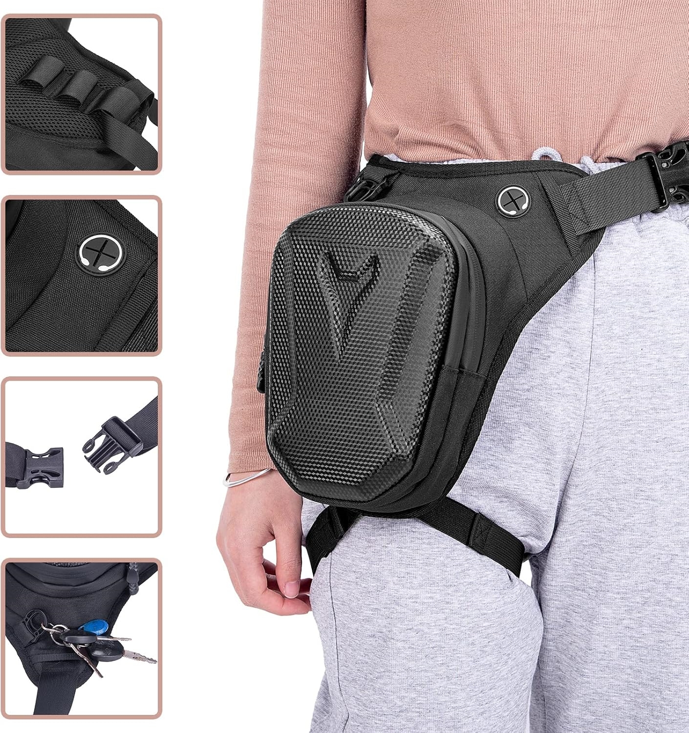 - Carrying Methods: Leg holster, waist bag, shoulder bag, crossbody bag, thigh pouch